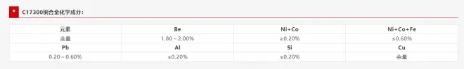 热导率(W/m.k20℃):105 电导率(IACS%):≥18 全硬硬度(HRC):36-42