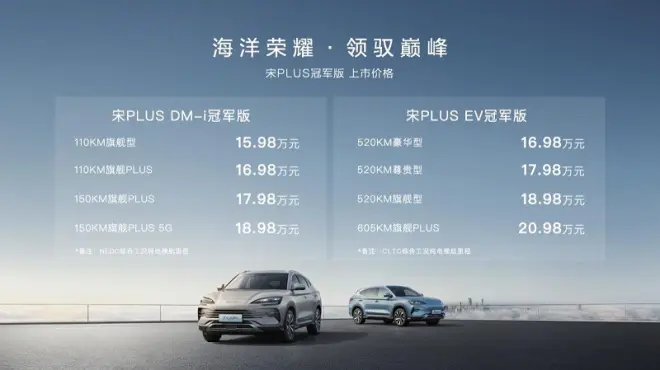 超然进阶 比亚迪宋PLUS冠军版正式上市 售价15.98万元-20.98万元