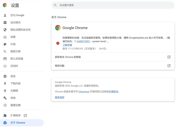 亲测可用!谷歌浏览器提示7:0x80072EE2更新失败的处理方法