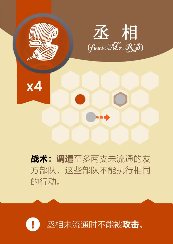 特性:当丞相未流通时,丞相不能被攻击。(空城)