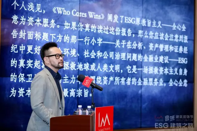 接下来,洪先生为大家分享了ESG的缘起和意义,并从建筑行业角度说明了设计对于ESG的重大影响,以及建筑行业在减碳方面的责任和达成ESG的宏观策略。