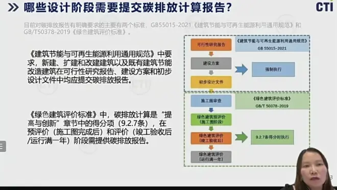 关于国家政策,赵老师强调有以下两项政策标准,设计阶段需提交碳排放计算报告。
