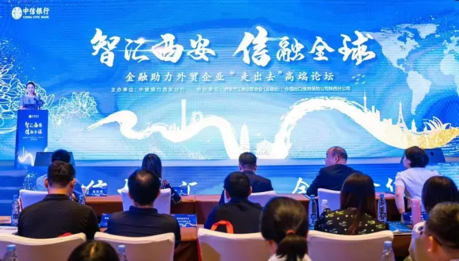 7月14日,中信银行西安分行联合中国出口信用保险公司陕西分公司、西安市工商联举办"智汇西安、信融全球"——金融助力外贸企业"走出去"高端论坛。该论坛紧跟“加快建设贸易强国”的战略指引,以创新金融服务助力外贸企业融入高水平对外开放新发展格局。