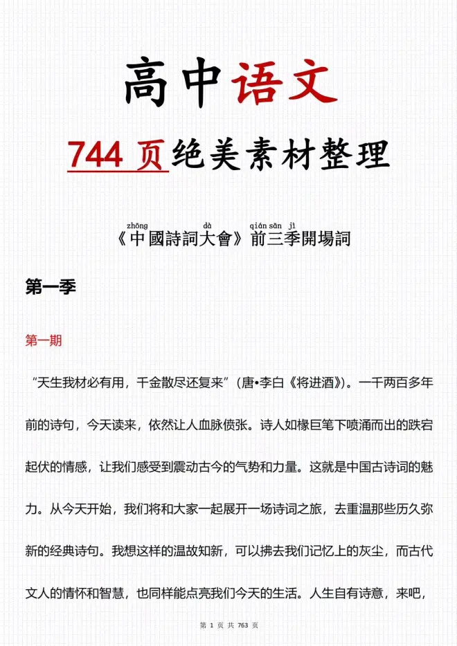 今天学姐给大家整理了这个高中语文作文744页素材绝对够你从高一用到高三啦!