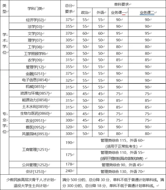 八、2022年中国农业大学硕士研究生招生考试学硕和专硕考生进入复试的初试成绩基本要求不同