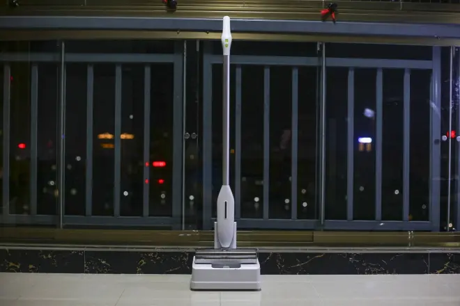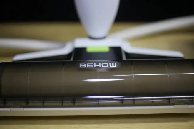 下面我们来看一下安装好的BEHOW B10,看起来有点像吸尘器但是实际上确实拖地的设备,而这款设备的电机采用行星减速齿轮配420不锈钢轴承外层6063铝材喷砂氧化硅胶+高强度尼龙材料防水、降噪设计;