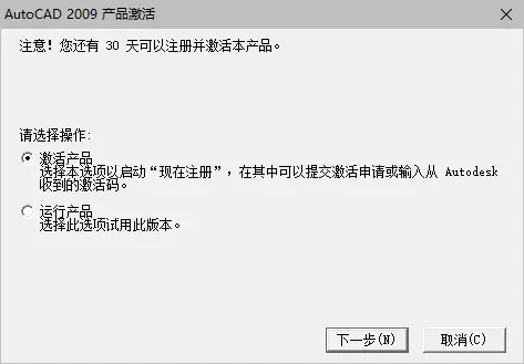 14. 双击打开桌面上的AutoCAD 2009的桌面快捷图标,等待会出现如下图所示的对话框,选择“激活产品”,点击“下一步”。