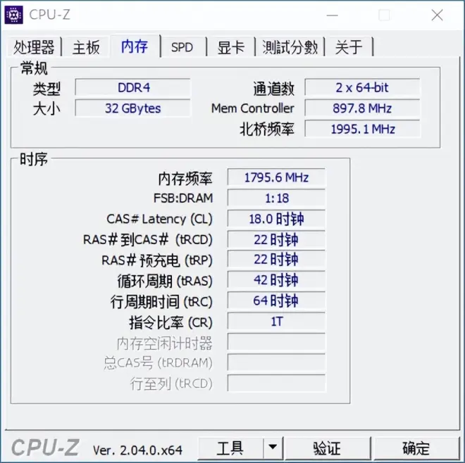 下面是通过Thaiphoon Burner软件识别到的内存信息,在默认工作频率2666MHz时序为19-19-19-43,电压1.2V,频率在3600MHz时序为18-22-22-42,电压1.35V,和其它软件检测到的信息一致。