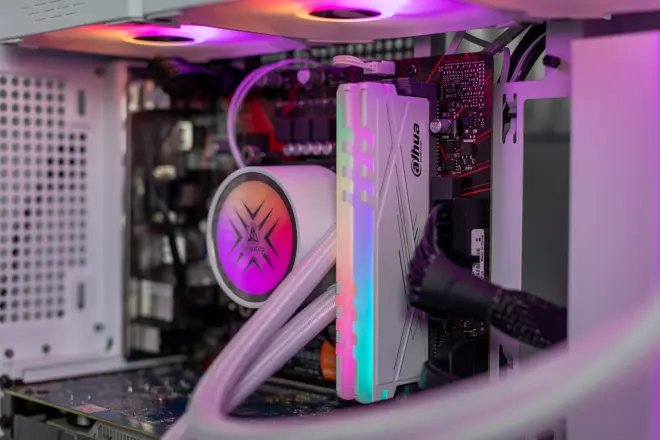 通过这段时间的使用,对于大华存储C600系列内存条的整体表现我还是很满意的。特别是它白色马甲上的RGB导光柱,和我的电脑灯光相互呼应非常般配。