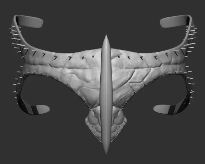 一块有昆虫翅膀的皮革作为眼镜。我开始遮挡脸部的形状,就好像我在做重新拓扑一样。