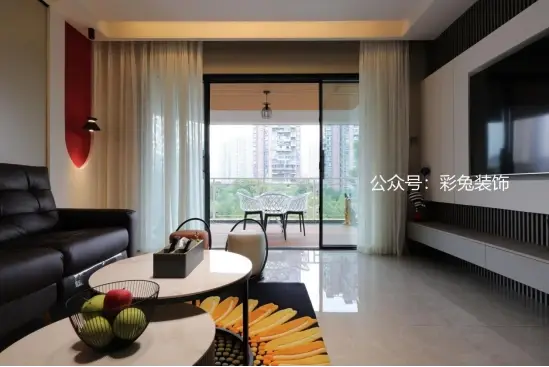 阳台是这次改造中的重点,阳台和客厅之间用细边框玻璃移门相隔,黑色门框与客厅的色调相搭配,沉稳大气。