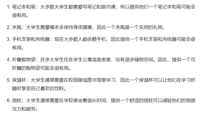 笔记本和笔:大多数大学生都需要写笔记和做功课,所以提供他们一个笔记本和笔可能会很有用。