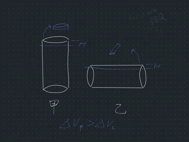 答案使用了体积公式:甲的体积并没有问题,但乙的切下部分从上到下不均匀。如果按答案的话算出的“ΔV乙”会比真实的“ΔV乙”大。所以S很明显并不是截面的那个矩形,而应该看成“月牙”的面积,高=h.