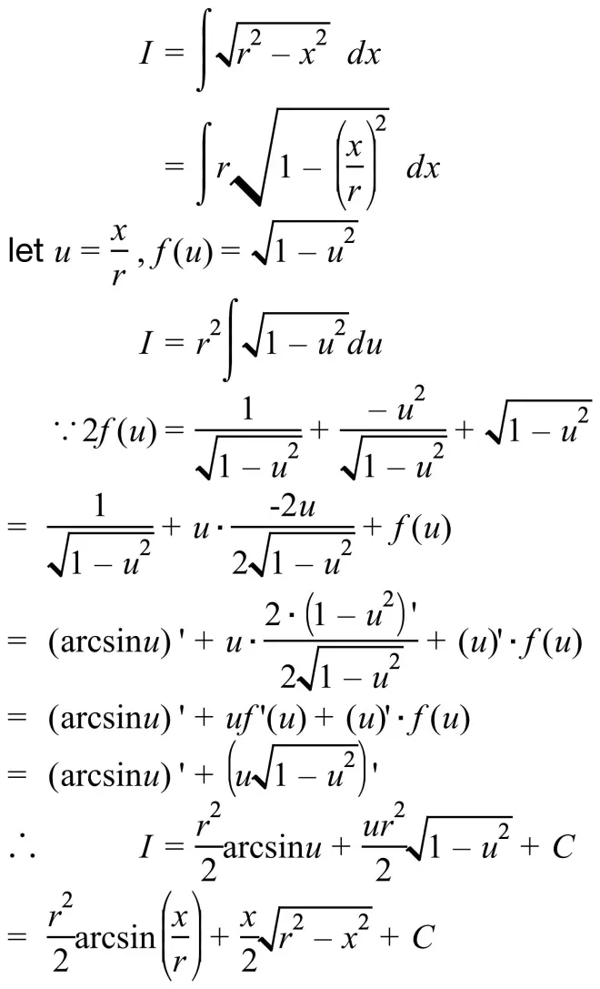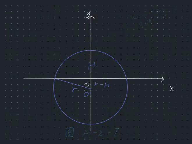 这里我们要让圆下移(r-H),因为“上减下加,左加右减”,则(PS:暂时先讨论切去的高不大于半径,其实算出这个,大于半径的也就显然了)