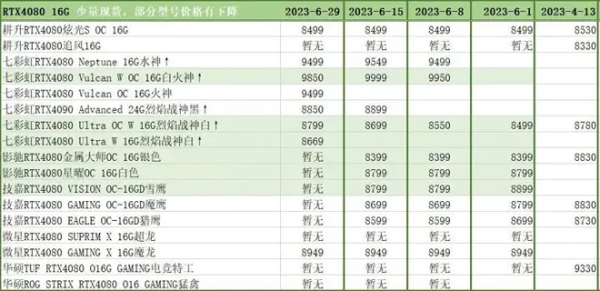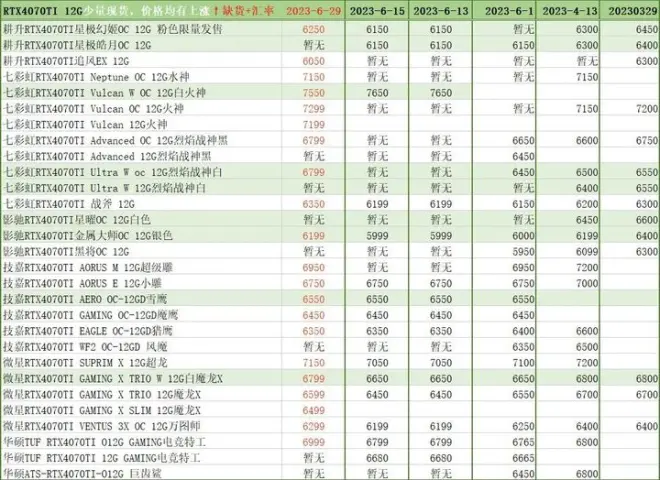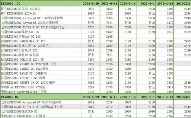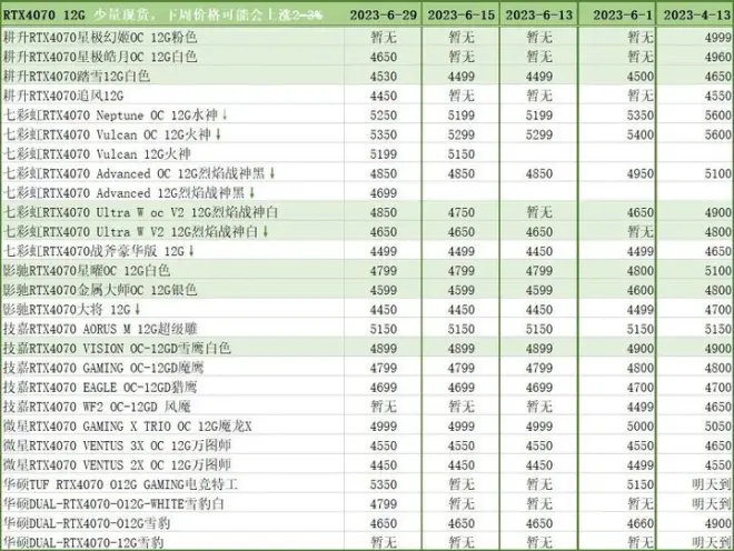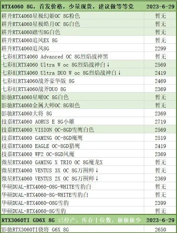 今天更新的内容是包含了A卡、N卡和INTEL ARC显卡的全新型号和价格。