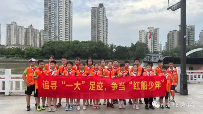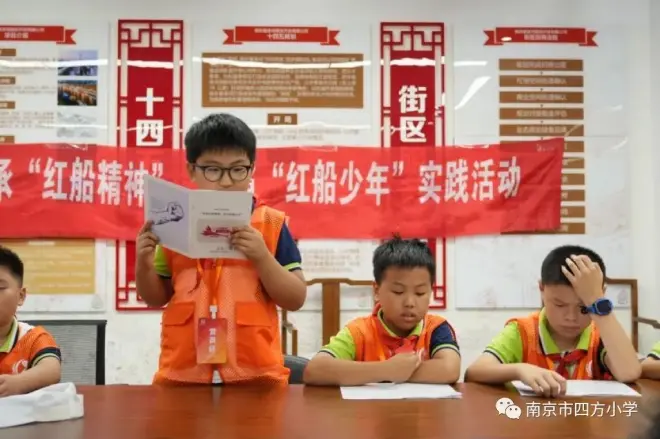2023年7月下旬,南京四方小学四(3)中队的“逐梦飞翔”和“梦想成真”两支红领巾学习小队的队员们来到了水木秦淮党群服务中心,开展了追寻“一大”足迹,争当“红船少年”主题实践活动。