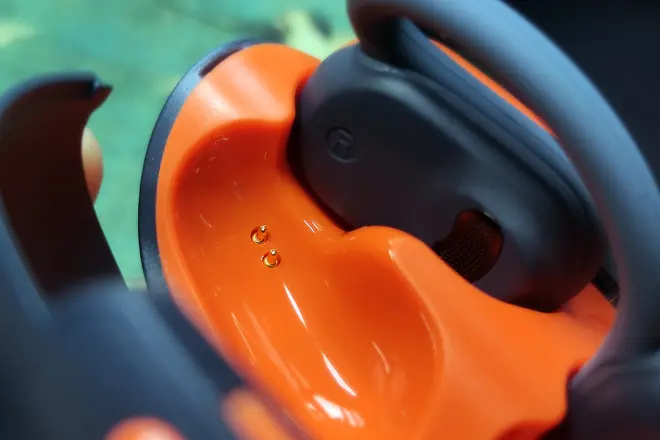 ▲采用90°夹角定位设计,耳机发生单元与电池单元前后分开,重力均衡,贴合耳朵,跑步、一般跳跃、汽车等场景都不会掉落。而且sanag塞那Z65S Pro MAX具备IPX5防尘防水功能,可以满足大多数场景下的使用。