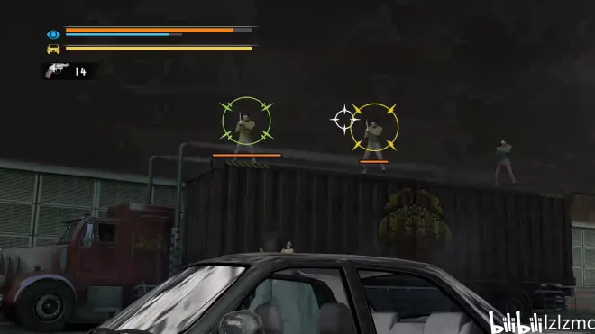 我们要做的就是,先打机枪手,重置他身上的绿色瞄准状态。喷子出来后,转火打喷子。机枪变黄之后转火打机枪,绿色后再转喷子。这样就做掉了喷子。 随后击杀机枪即可。 司机正常L1击杀就行。