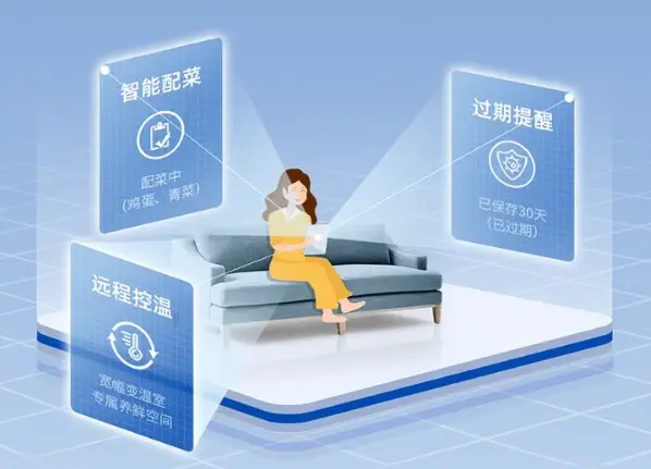 它的最大亮点还是它可以支持手机APP操控的,可以在手机远程操控家里的冰箱,无论你身处何方,家里冰箱的保鲜温度随你调节。手机还可以设置食材的过期提醒,还有智能菜谱功能,使用更加智能方便。