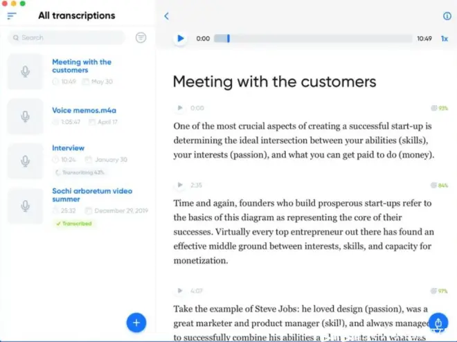 Transcribe是一款专业的录音转换成文字工具,它可以自动分段,控制播放速度,以及自动识别和拼写特定的单词。这个工具支持多种语言,包括英语,西班牙语和法语等。这个应用程序不是免费的,但是它提供了免费的试用版,让用户可以测试并了解其功能。