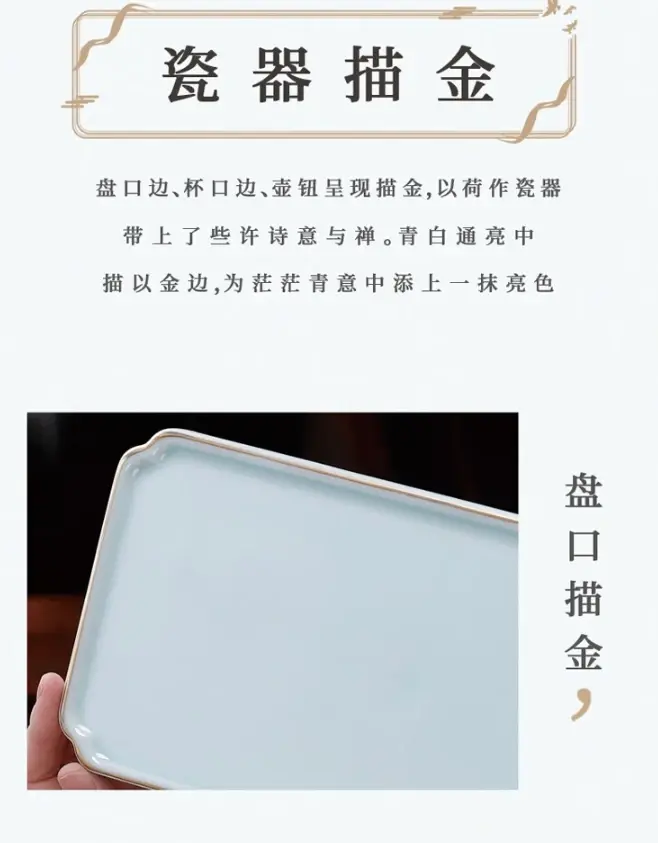 八方礼茶具|荷家欢乐茶具套组,盘口边杯口边、壶钮呈现描金以荷作瓷器带上了些许诗意与禅。青白通亮中描以边,为茫茫青意中添上一抹亮色。
