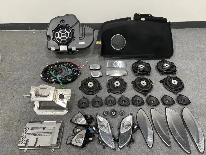 27个喇叭(13个单体喇叭,7个中音喇叭,4个中低音喇叭,2个Frontbass低音喇叭和一组超重低音喇叭),总功率达1590W
