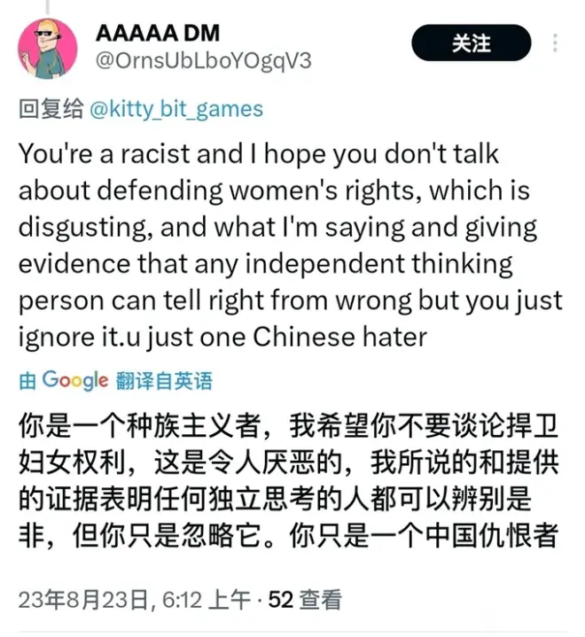 同样的,一位有着10万关注量的博主也发表了类似的言论。有趣的是,在评论下方甚至有人用种族主义与之对线。