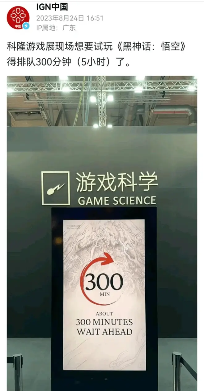 今年的科隆游戏展上,多了一个亮眼的身影,那便是《黑神话:悟空》。展会现场,想要体验这款游戏的玩家排起了长龙,排队时长已经达到了惊人的300分钟,可见玩家们的热情高涨。