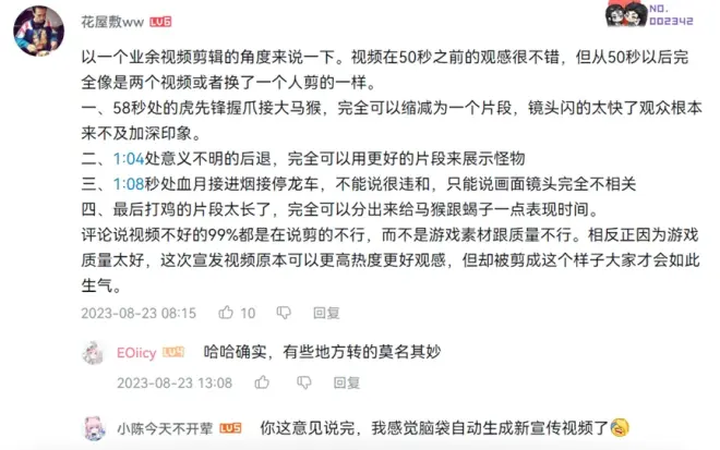 这支在科隆游戏展上发布的宣传视频,使用的几乎都是试杭州玩会上的实机画面,国内玩家对其剪辑质量颇有微词。因为此前发布的宣传视频中,有着大量精美的电影级CG镜头,制作规格显然高出许多。