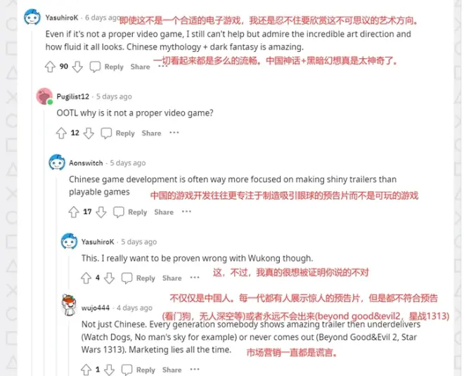 一家法国的媒体认为《黑神话》比《匹诺曹的谎言》更好上手且兼更具挑战性。“画面虽然不如第一个PV震撼,但它真的真的很漂亮。我无话可说,屏幕上的画面太棒了。”