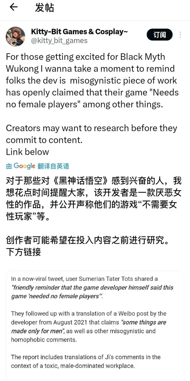 《黑神话》如今到了海外还是要被当地的主流媒体“拷打”一番,对此,国内网友发出锐评:“《黑神话》是亚洲公司制作的一款以动物为主角的游戏,且该游戏灵感来源于一部含有:男性怀孕,动保平权,女权建立国家,少数族裔,黑色种族盗窃者等要素的小说。”