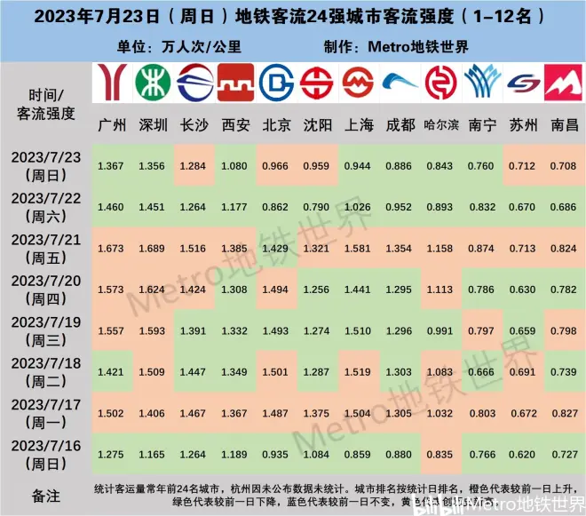 24城中6城客流量较前一日上升(京星苏沈昌连)。没有城市客流破千万,与前日持平,5城客流破四百万(广京沪深蓉),与前日持平。16城客流破百万,与前日持平(沈阳入列,南宁退出)。