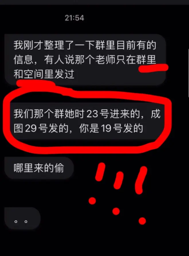 如果说最后甚至没人偷图,甚至都不是你们群里某个没被找到的人偷的,我想问问有任何一个攻击过我的人会来跟我道歉吗?会来跟我的父母道歉吗?因为疫情他们工作很困难,每天很辛苦,连我大学的申请都很难在进行,我也只能在家里被迫gap,却要遭到网上一群人没有任何证据的谩骂凭什么????那些张口就来的人在说话前到底有没有过任何思考???