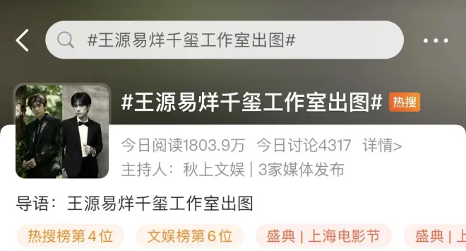 昨日王源与易烊千玺参加了“上海国际电影节”现场活动,而本次活动有王俊凯的代言广告,他参加了其中宣传片的录制。王源工作室与易烊千玺工作室分享了定妆照,两人不同的造型有着不一样的帅气。
