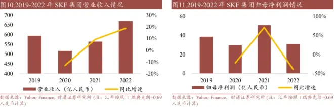SKF持续推进研发与生产,加速渗透高增长前沿领域。根据SKF2022年报,公司正在加速新技术的开发,例如电动汽车、回收和关键领域的解决方案与产品。2022年,SKF代表性创新产品有创新陶瓷滚珠轴承,是许多电动汽车传动系统的关键部件,相比传统轴承具有更轻、转速更快的特点。这意味着更少的摩擦和能源消耗,以及更长的使用寿命和更低的购买成本。