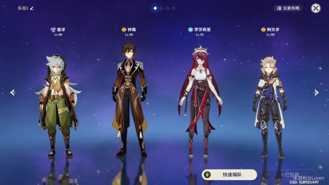 首先雷泽、钟离(盾辅)、冰系角色,这三个位置是固定的。