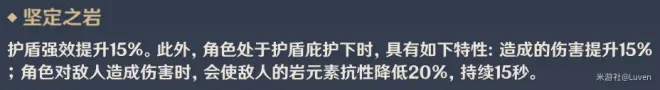 这里说一下,岩属性的护盾对所有元素伤害和物理伤害都有150%的吸收效果,也就是说,岩属性的护盾量实际要再乘以1.5才是正确的盾量。