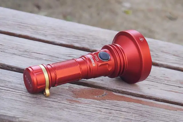 FT03的外观设计沿袭了前两款的设计元素,灯珠亦同样沿用了国产昌达灯珠,作为“大杯”的FT03此次升级到了SFH55(之前的FT01为SFQ43),搭配大口径橘皮浅光杯,有着超万流明的大泛光(最大光通量为10020 LM,光强为86400坎德拉)和不俗的远射能力(587米),可从容应对更多场景,满足大光亮需求。