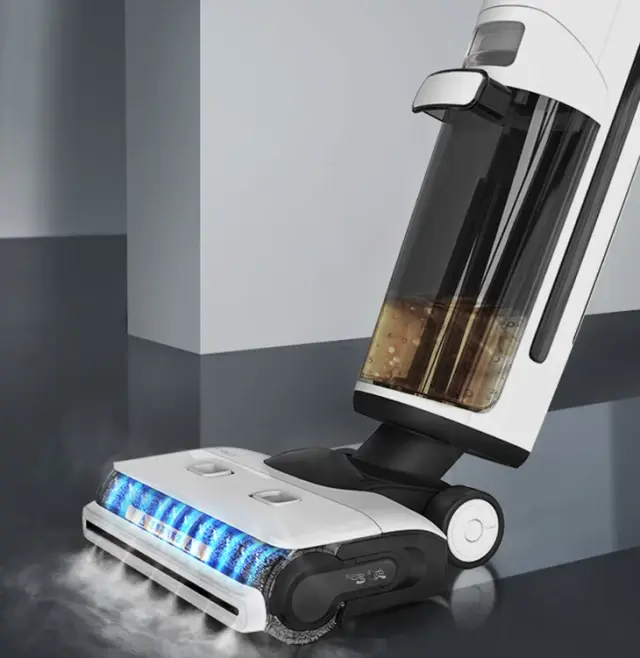 芙万steam2.0洗地机是居家清洁的首选推荐,采用的是无线设计,机重约为5kg左右,搭配着700ml污水箱以及800ml清水箱。电池容量4000mAh,续航时间也可以达到40分钟左右。双侧贴边滚刷可以使墙角,桌面更好的清洁,清洁范围更广一些。尤其是采用了恒压活水清洁系统,离心风干,杀菌率为99.99%