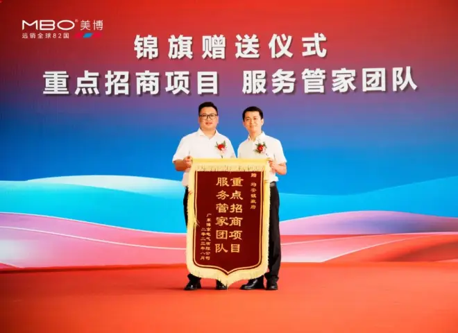 会上,美博还向顺德均安镇政府赠送了一面锦旗,对后者“管家式”的企业服务表示感谢。