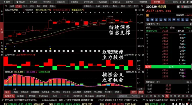 3、拓尔思,持续调整,留意支撑;捕捞金叉,或有机会。