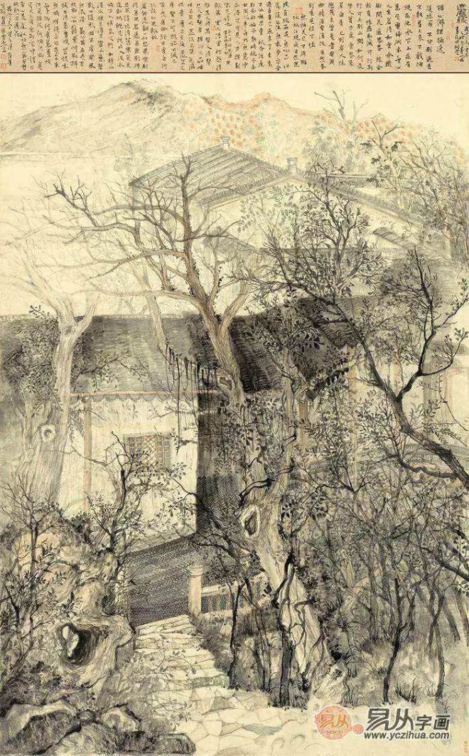 他以简约的格局和清雅的色彩,呈现清幽宜人的山水景观以及一群文雅人士赏景品谈的聚会情景,浸染微妙,情怀高逸。细细品味此作,一个突出的感觉是它的“气韵生动”。气韵生动是画面表现出来的“生命的节奏”或“有节奏的生命”的视觉形象,就是一幅画中各形式要素间有机联系形成的“一气贯通”、“浑然天成”的感觉。