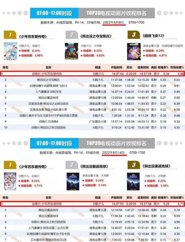 《少年英雄小哪吒》自开播以来热度不断高涨,收视率不断攀升,多次夺得收视率全国第一。