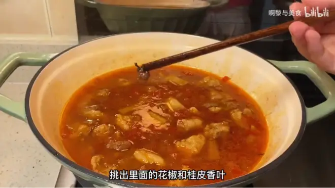 一小时后,挑出里面的花椒桂皮香叶。