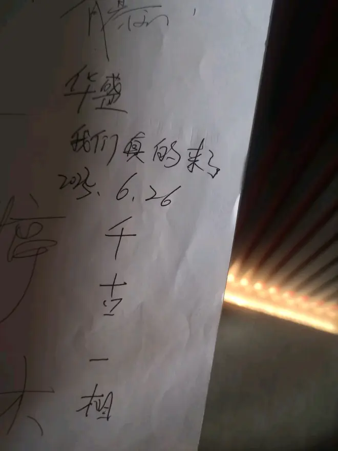 走着,看着,你给我讲着! 我看到一个留言板,趁你去厕所的时间我写了我们真的来了,你出来后我也让你写,