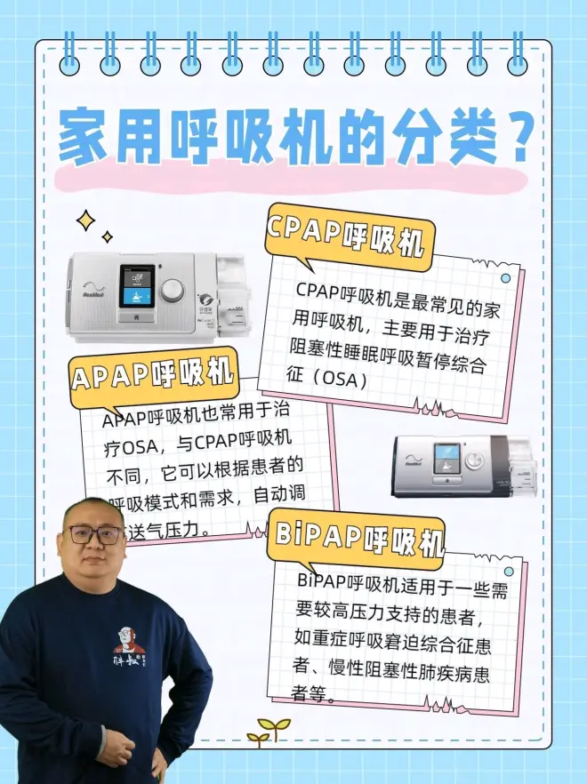 家用呼吸机是用于处理呼吸问题的医疗设备,根据其使用和功能特点,可以分为以下几类: 1. CPAP呼吸机(持续气道正压通气):CPAP呼吸机是最常见的家用呼吸机,主要用于治疗阻塞性睡眠呼吸暂停综合征(OSA)。它通过提供持续的正压通气,使患者的呼吸道保持通畅,防止呼吸道阻塞和呼吸暂停发生。 2. APAP呼吸机(自动气道正压通气):APAP呼吸机也常用于治疗OSA,与CPAP呼吸机不同,它可以根据患者的呼吸模式和需求,自动调节送气压力。APAP呼吸机能够实时监测气道的阻塞和呼吸模式的改变,并根据需要自动调整压力,为患者提供更加个体化的治疗。 3. 双水平气道正压通气(BiPAP):BiPAP呼吸机适用于一些需要较高压力支持的患者,如重症呼吸窘迫综合征(ARDS)患者、慢性阻塞性肺疾病(COPD)患者等。它提供两个不同的压力水平:呼气压力低,吸气压力高,以提供更好的舒适性和治疗效果。 4. 带加湿器的呼吸机:为防止因治疗期间的干燥而引起的不适,一些呼吸机配备了加湿器。加湿器可以在治疗期间为患者提供适宜的湿度,减少喉咙和鼻腔的不适感。 家用呼吸机的选择应根据个人的医疗需求、医生的建议和治疗目标来决定。对于合适的呼吸机,病患者需要仔细了解其特点,并在使用之前咨询专业人士的建议。通过合理的选择和正确的使用,家用呼吸机能够有效帮助患者改善呼吸问题,提高生活质量。