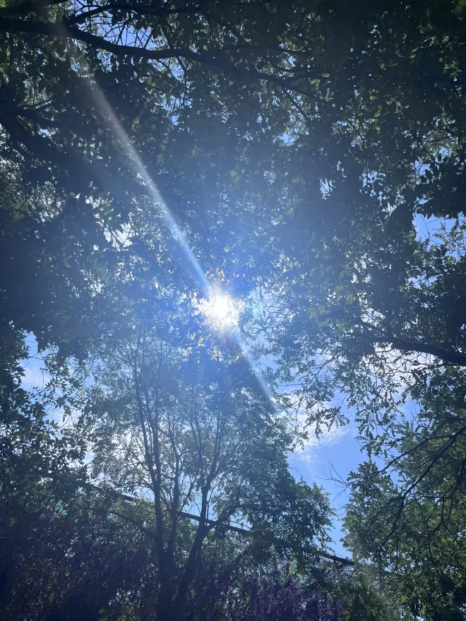 为什么拍这张呢,因为想拍出一个很有夏天感觉的图。就那种听着蝉鸣,阳光从树叶缝里时不时露出来的感觉~