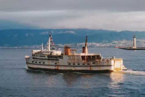 随后,这艘船卖给了中国的海口港集团公司(海口港船务公司),船名更名为“鹏程1号”,在中国海口-深圳蛇口之间搭载汽车和旅客往返于两地之间,在当地我感觉有点类似于豪华游轮的风格,设施好,服务好等,但实际上这艘船船内各设施无法使用,同时设施,设备老化,管理出现了问题,这是这艘船的一些缺点,之后的2001年,因为已达到强制报废船龄,船舶,船舶设施老化等原因,于2001年7月16日报废,随后这艘船出售给海外。