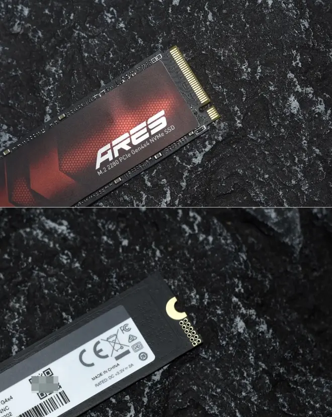 雷克沙ARES固态,正反两面特写。标准的2280尺寸,主控和nand颗粒布局在一个平面上,也称之为单面设计。