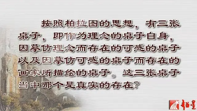 具体的桌子是可以被毁坏的,但是理念的桌子永恒存在。